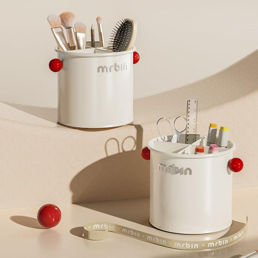 Stylish Cream-Style Makeup Brush Holder with Detachable Dividers and Drainage Features