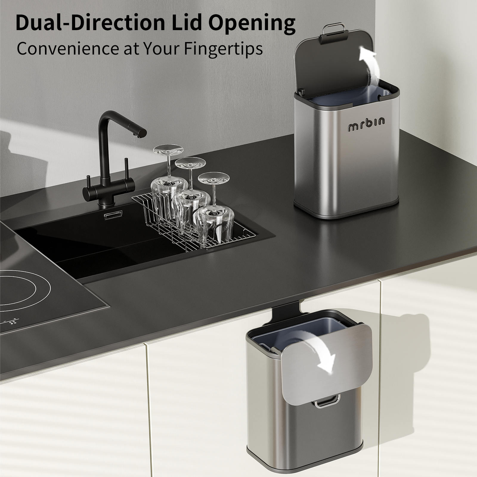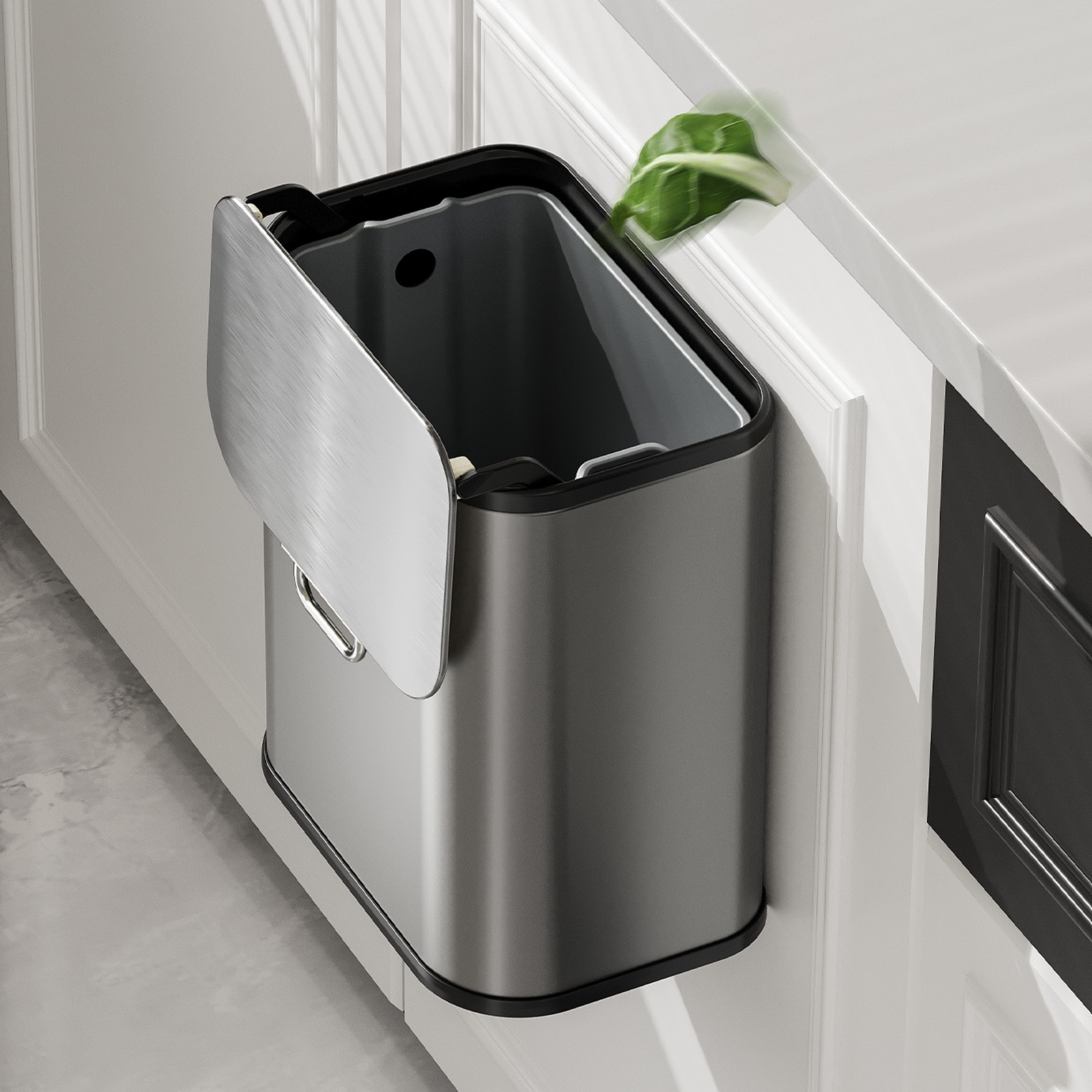 Kitchen Stainless Steel Compost Bin with Lid Countertop, 6l / 1.6gal Small Indoor Hanging Trash Can for Cabinet Door, Small Under Sink Food Scraps Garbage Pail, Eclipse-Grey