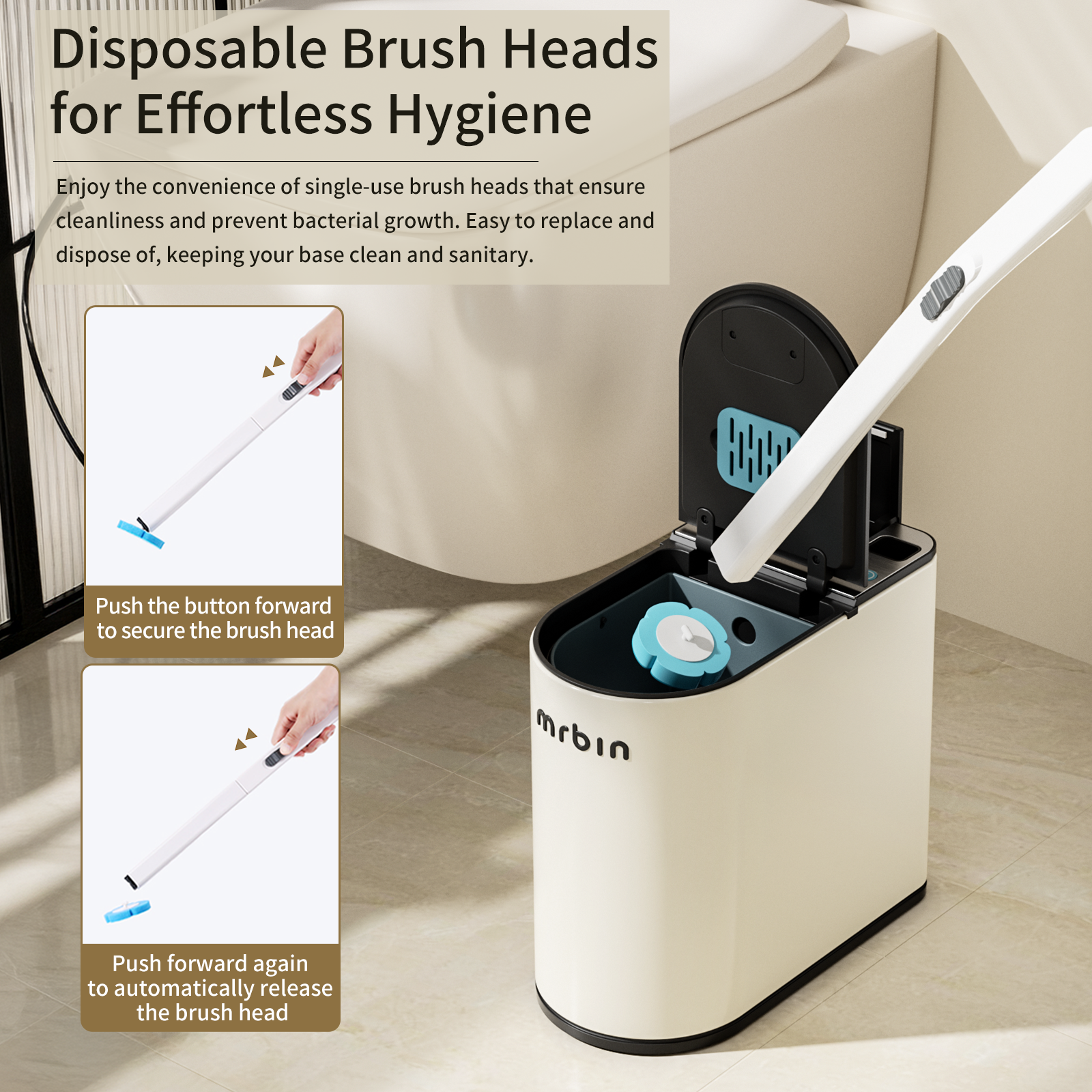 - One-Use, Touch-Free Clean: Each disposable brush head is pre-soaked with powerful cleaner for a deeper, faster toilet clean. Press the button and the head ejects automatically—no dirty hands, no mess.